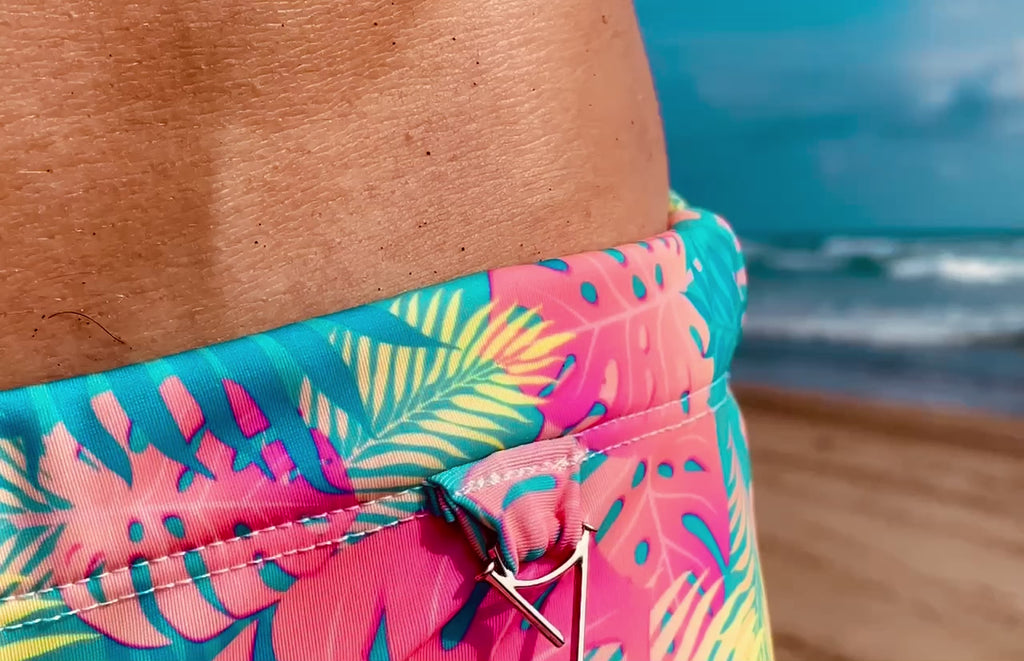Traje de baño estilo brief con estampado clásico de palmeras en colores pastel con distintivo de la marca